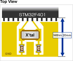 -Please lay out crystal unit, capacitor and resistor near STM32F401 as far as possible.