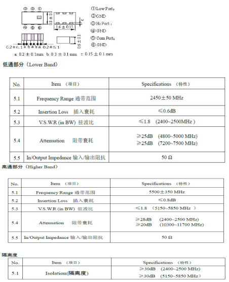 StrongFirst P/N: SLDS1608D2450LAND67 (Diplexer)