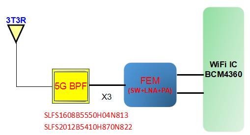 WLAN Block Diagram—BCM4360 5G 3T3R for AP StrongFirst P/N: SLFS1608B5550H95N813(BPF)