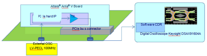 1. Connect StrongFirst oscillator to Altera Arria® V PCIe® board as reference clock.