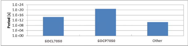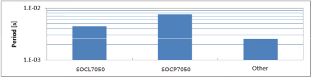 Evaluation result of 3 oscillators (SOCL7050, SOCP7050 , Other). SOCL7050 has the best performance.