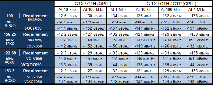 StrongFirst clocks meet Xilinx® FPGA transceiver reference clock jitter requirement.