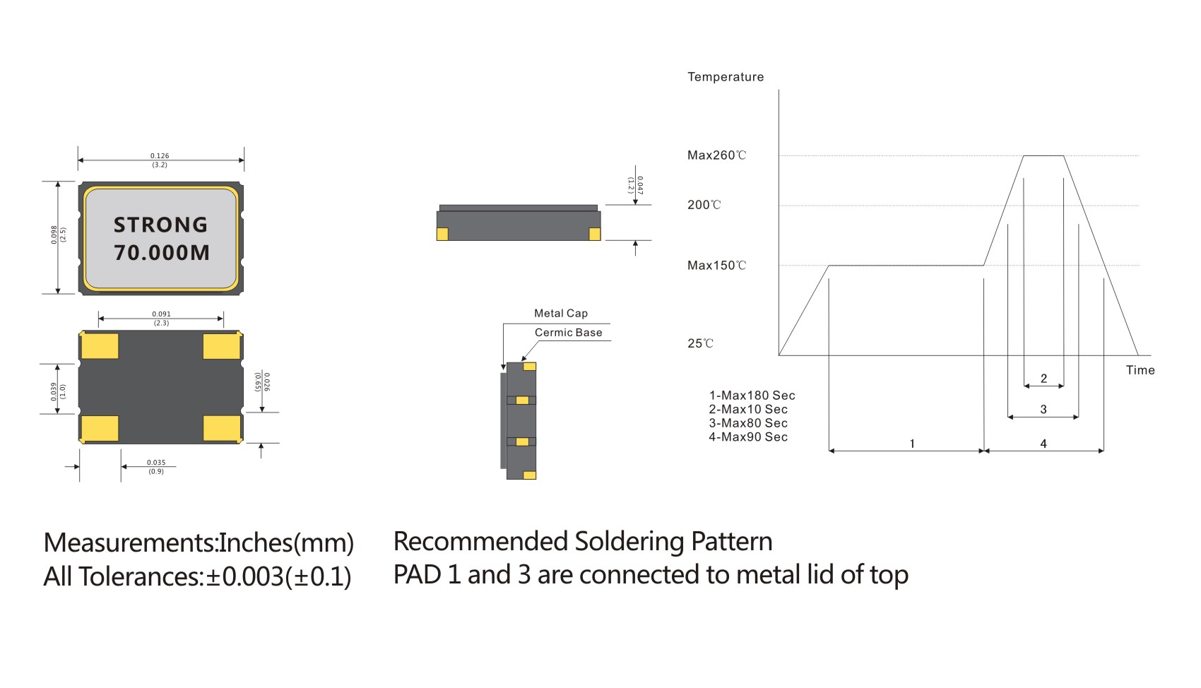 Typical 3.2*2.5*1.2mm ceramic SMD package.
