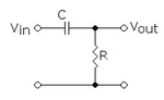 The figure on the right shows a first-order high-pass filter. Its cutoff frequency is determined by: