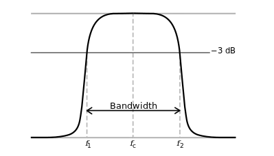 Bandpass filter cutoff frequency and passband width